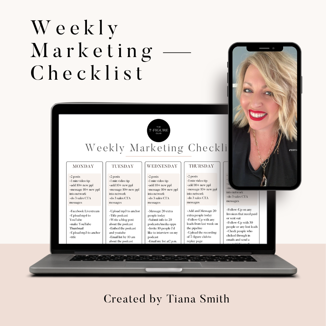 BONUS! Printable (and Digital) Marketing Checklist and BONUS Video Training from Tiana on how she uses this in her own business to automate 6-figures and beyond!
